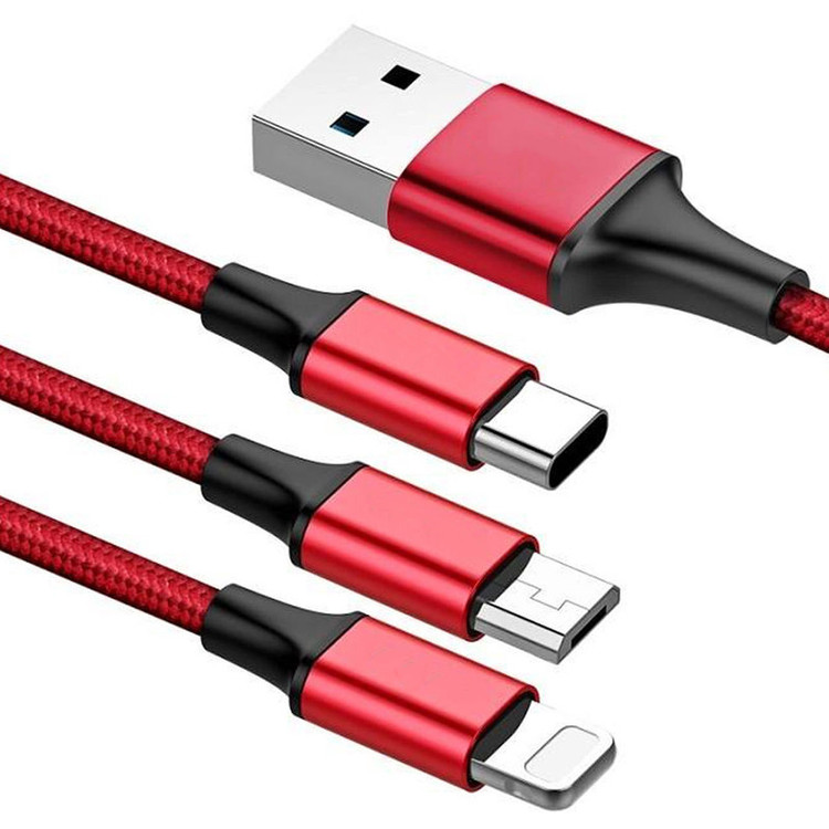 کیفیت تولید بالا دارای سه کانکتور تایپ سی، لایتنینگ و میکرو یو اس بی جنس: آلیاژ آلومینیوم، TPE، روکش نایلونی ضد گره خوردن و پیجیدن مقاومت در برابر کشیده شدن و خم شدن کانکتورها فست شارژ